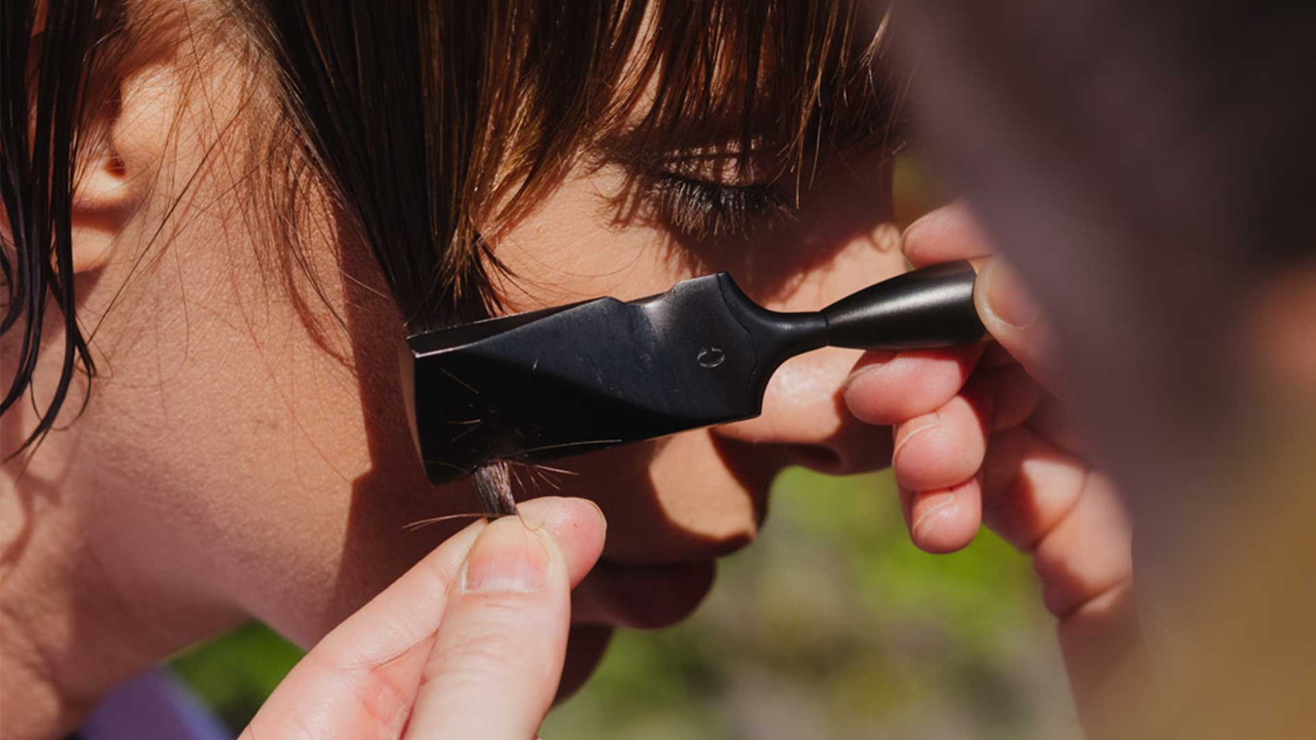 Der Calligraphy cut ist ein revolutionärer Haarschnitt mit einem innovativen Instrument! Eine 3 Grad geneigte, scharfe Klinge schneidet konstant im 21 Grad Winkel und gleitet so sanft durch das Haar. Der bis zu 300% größerer Querschnitt sorgt für mehr Volumen, weniger Spliss, mehr Glanz und gesundes Haar